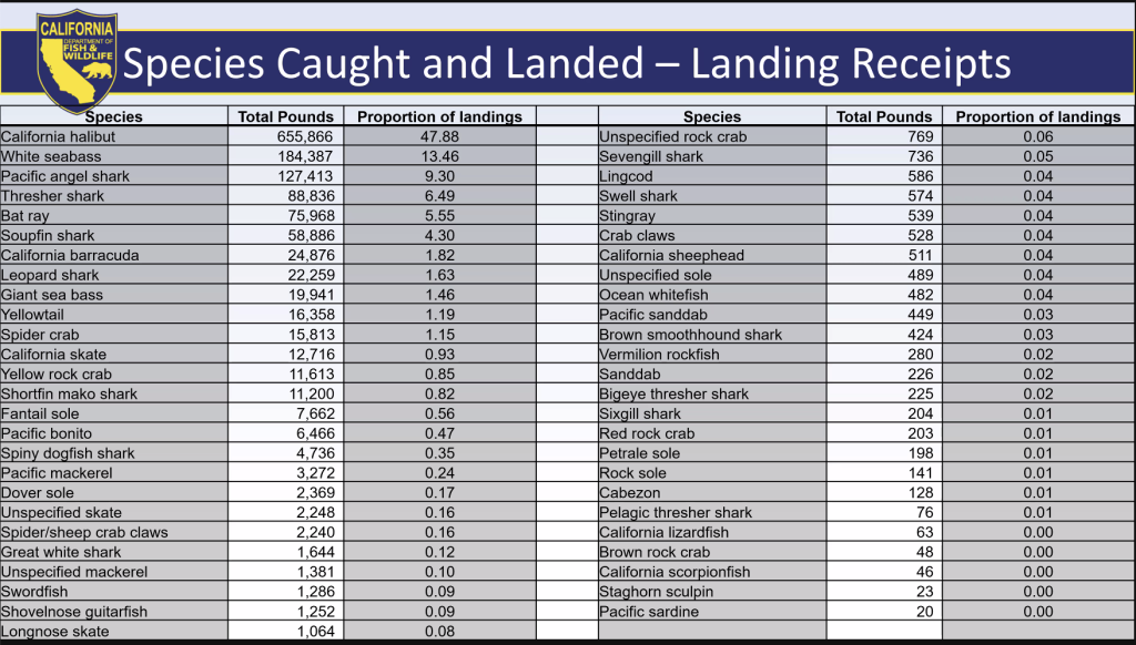 There are more boats fishing for California halibut using less harmful and more targeted hook and line than those using setnets.