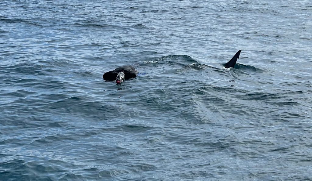 Under a NOAA permit issued under the White Shark Stewardship program managed by the Greater farallones National Marine Sanctuary, we are able to deploy a soft decoy equipped with a camera to observe sharks and also identify known and new individuals. On two occasions we did not observe a shark at the surface but after examining the footage from the seal’s camera we observed a shark passing beneath. On one occasion the group aboard was excited by a surface pass from a shark and a revisit a few minutes later. All images are provided to NOAA and the researchers at the Stanford’s TOPP research program. Observations go to support long term monitoring of whales, seabirds and sharks in our National Marine Sanctuary and we hope to increase support for the 15th National Marine Sanctuary to the south in the proposed Chumash Heritage National Marine Sanctuary off the Big Sur coastline of California. Our existing 4 California sanctuaries, and the California marine protected areas collectively help us meet the goals set by the United Nations to protect 30% of our oceans by 2030. To date, the Marine Conservation Institute’s MPA Atlas estimates 7.7% of the world oceans fall under marine protected areas. Most of these fall under national jurisdictions and only 2.8%of the ocean is fully or highly protected from fishing impacts.