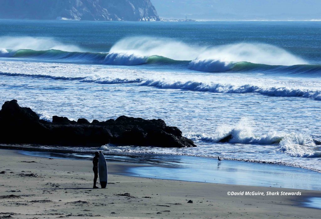 The last white shark-human incident in San Luis County occurred on August 15, 2015, also at Morro Strand Beach when a white shark bit a female surfer’s board, with no injury to the surfer. Although white sharks are fairly common along the west coast, and the shark population is increasing since hunted to near extinction in the 1970s and 1980s, human-white shark encounters are rare.