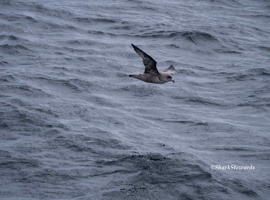 We venture out to the end of the continental shelf where the depth plummets from 200 feet to over a 1500 feet down into the abyss. Blue whales have been reported here recently and we spy several blackfooted albatrosss, scores of sooty shearwaters and fulmars, all pelagic seabirds, sailing in the building breeze. At last we turn back towards shore and run past hundreds of seabirds feeding on the surface. Outside the turning circle where the ships converge to enter the shipping channel into the Golden Gate we see hundreds of whirling seabirds, dipping and diving for baitfish.